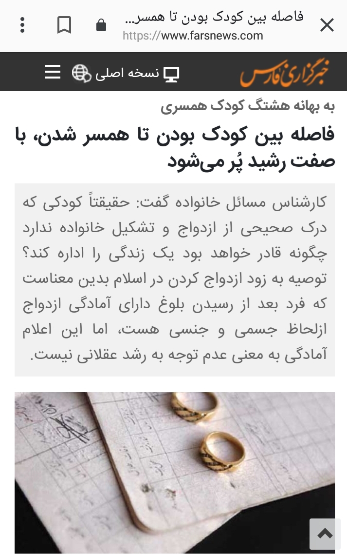 کارشناس مسائل خانواده متذکر شد: حقیقتاً کودکی که درک صحیحی از ازدواج و تشکیل خانواده ندارد چگونه قادر خواهد بود یک زندگی را اداره کند و در تربیت فرزندان خود اثر مثبتی بجا بگذارد؟ توصیه به زود ازدواج کردن در اسلام بدین معناست که فرد بعد از رسیدن بلوغ دارای آمادگی ازدواج از لحاظ جسمی و جنسی هست، اما این اعلام آمادگی به معنی عدم توجه به رشد عقلانی نیست.